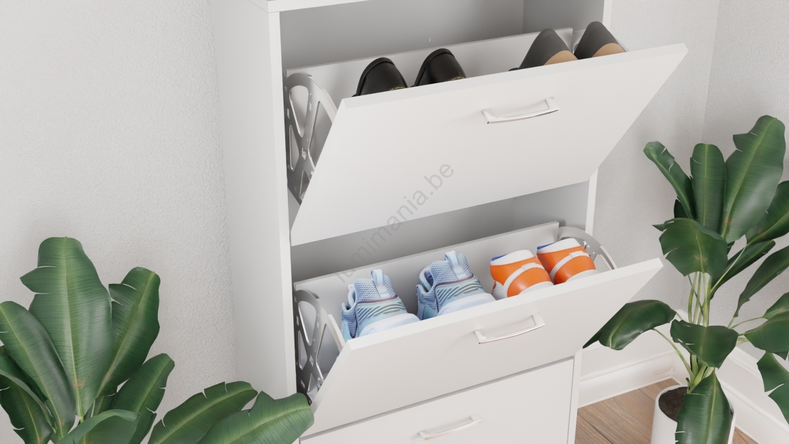 • Dankzij zijn slanke vorm neemt deze 3-laags schoenenkast weinig vloeroppervlak in beslag en biedt toch voldoende opbergruimte.