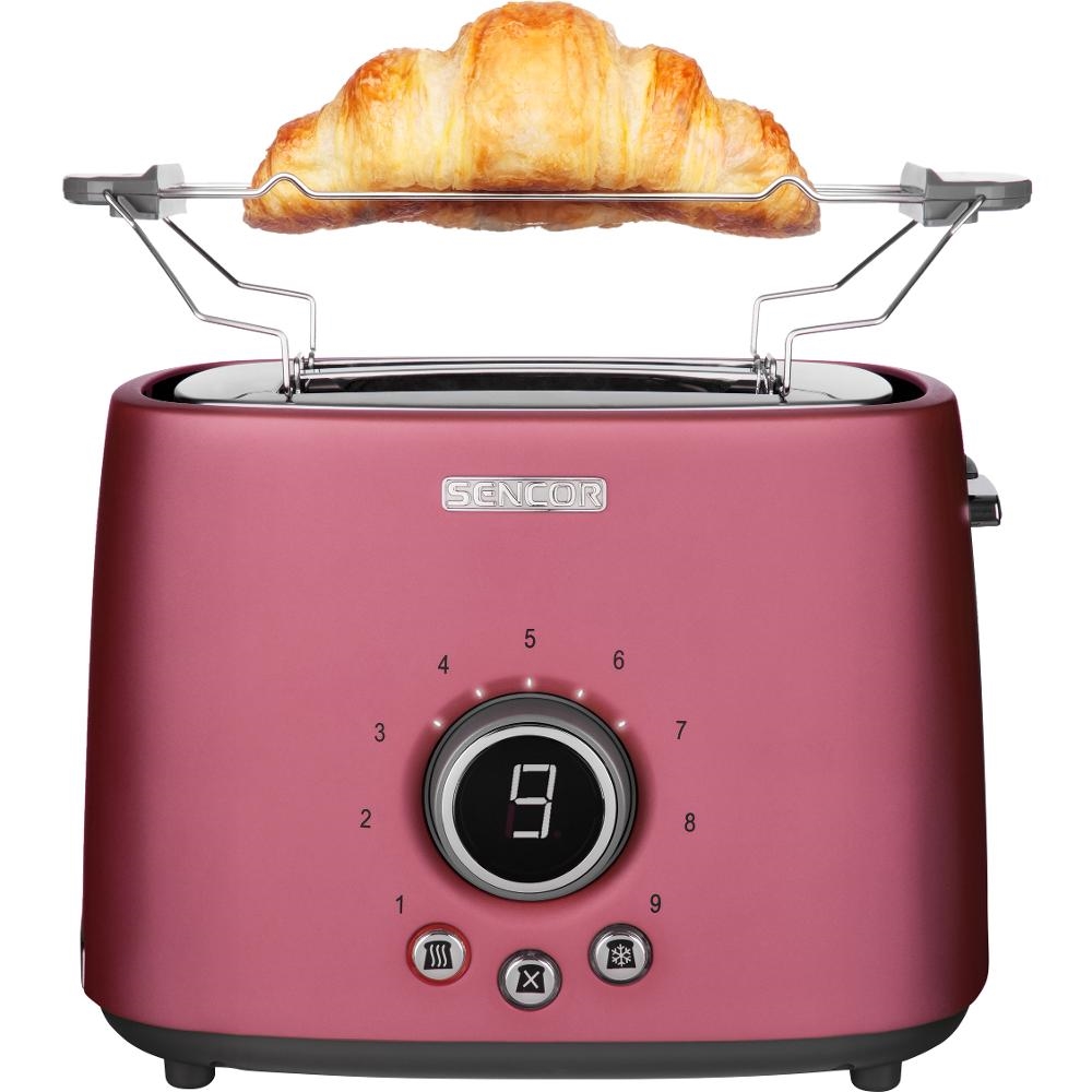 Sencor - Broodrooster met 2 sleuven en opwarmrek 1000W/230V roze