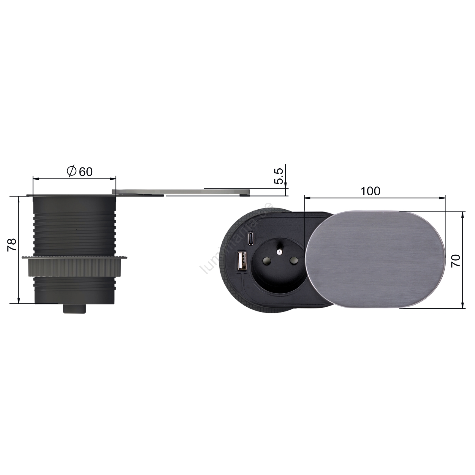 • Inbouw stopcontact voor werkbladen en bureaus met USB snellaadfunctie.