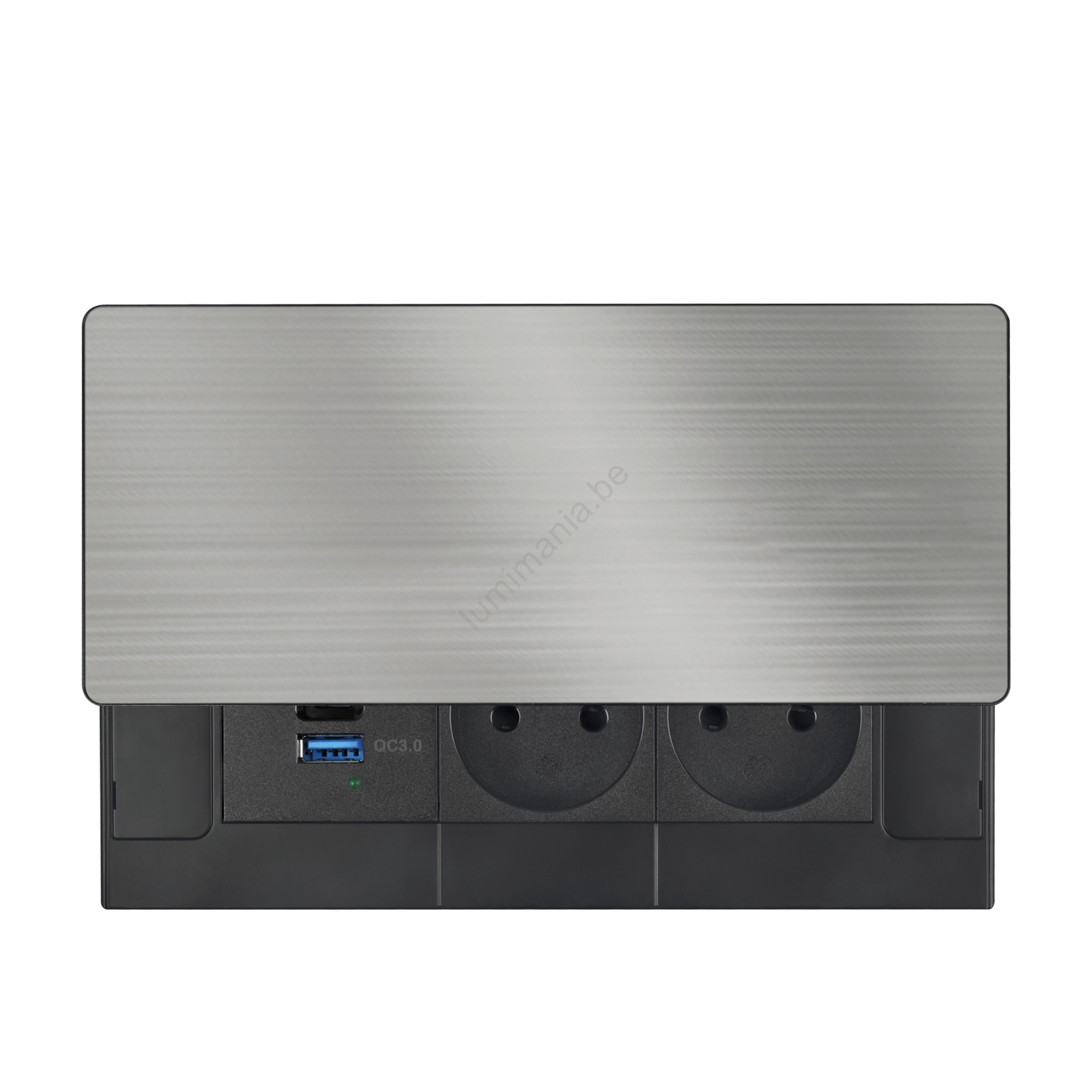 • Inbouw stopcontactenunit met schuifdeksel, bedoeld voor montage in een werkblad of meubel, die elegant verborgen blijft totdat u hem nodig heeft.