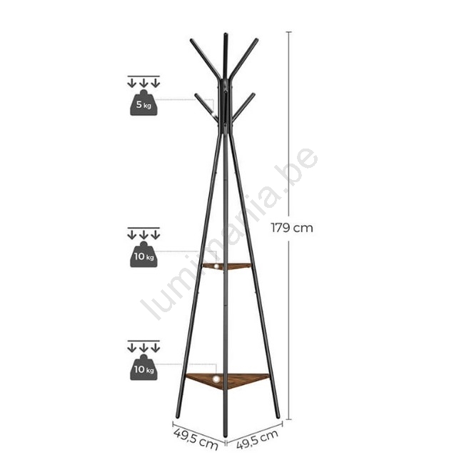 • De kapstok met een eenvoudige driehoekige voet is uitgerust met 6 elegante haken en twee stevige planken.