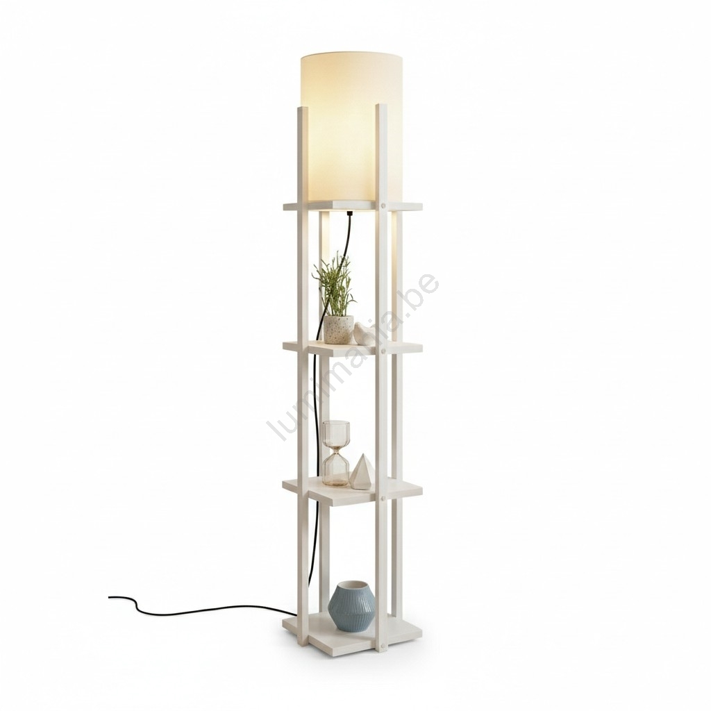 Staande lamp met planken NORA 1xE27/40W/230V wit kenmerkt een mooi en functioneel ontwerp.  Voor het licht is een lamp met E27 fitting geschikt. Hier kunt u andere lampen tegen voordelige prijzen kopen. U heeft een interessante aanwinst voor uw woning.