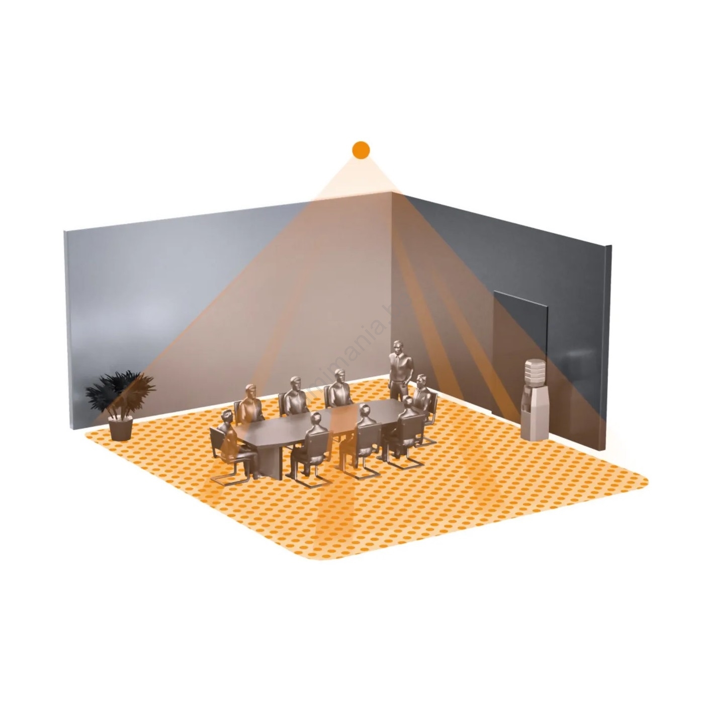 • Zeer nauwkeurige infraroodmelder met een aanwezigheidsdetectiezone van 8 x 8 m (64 m²).