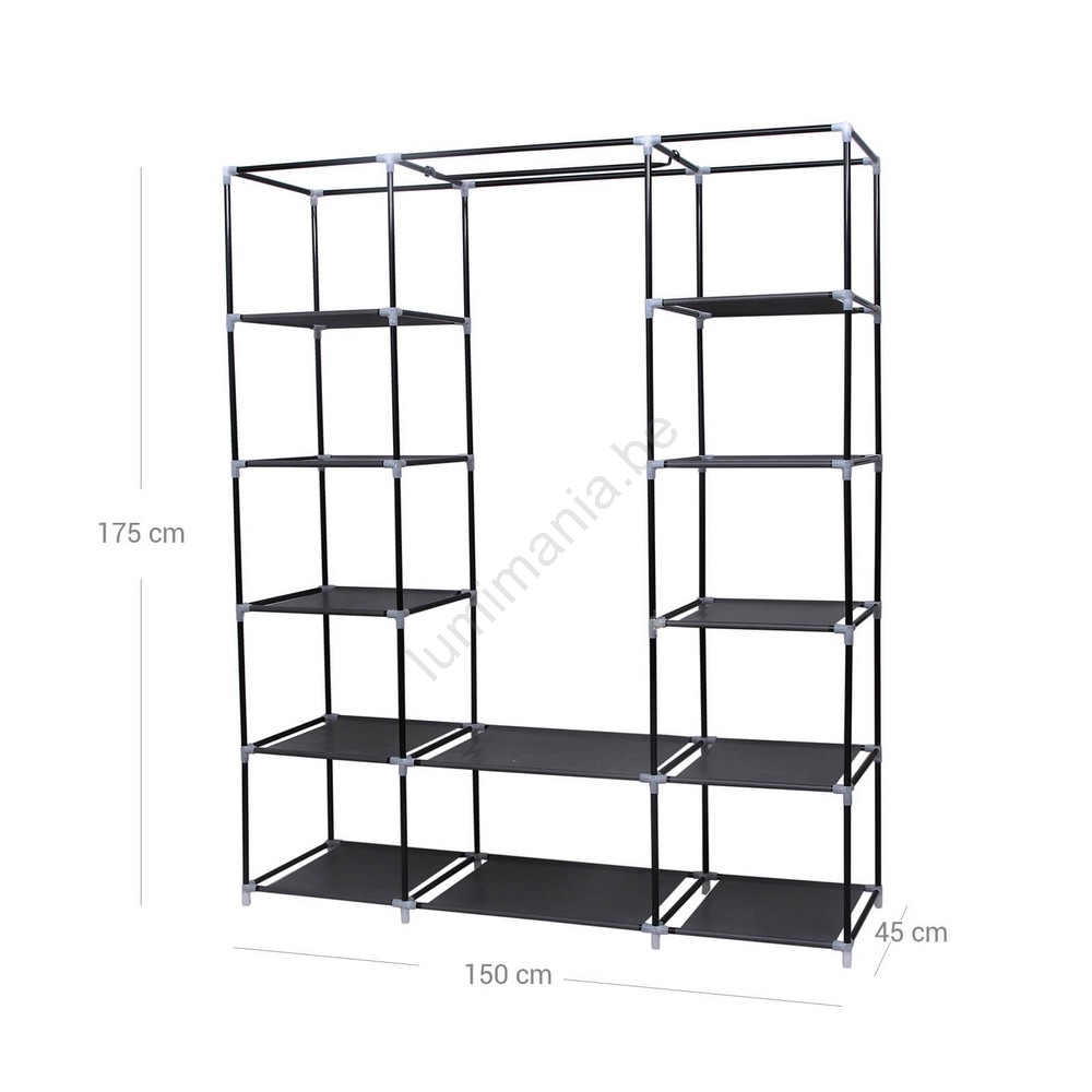 • Stoffen opbergkast met planken en kledingstang MATIS 150x175 cm, zwart