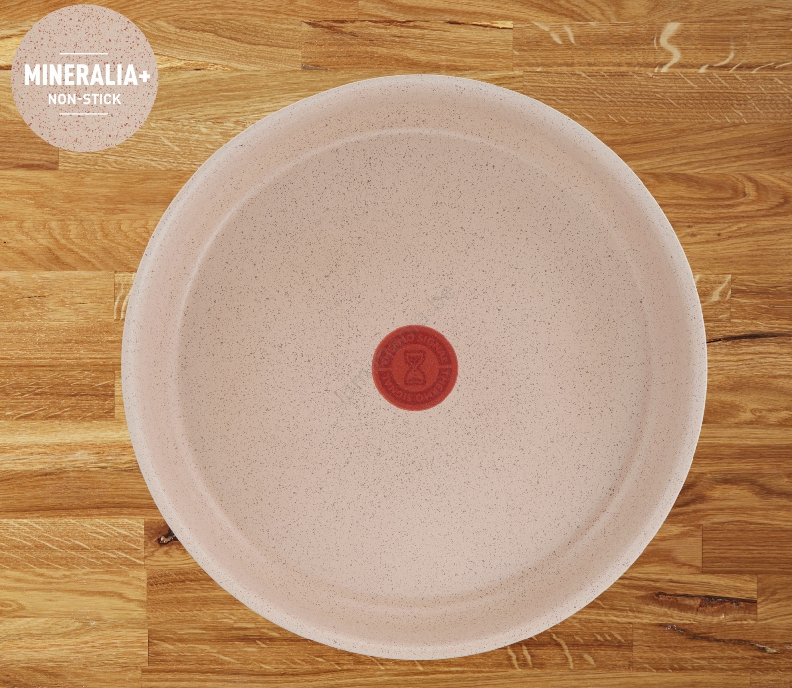 • Het binnenoppervlak is voorzien van de anti-aanbaklaag Mineralia+, die koken met minimale vettoevoeging mogelijk maakt en het reinigen vergemakkelijkt.