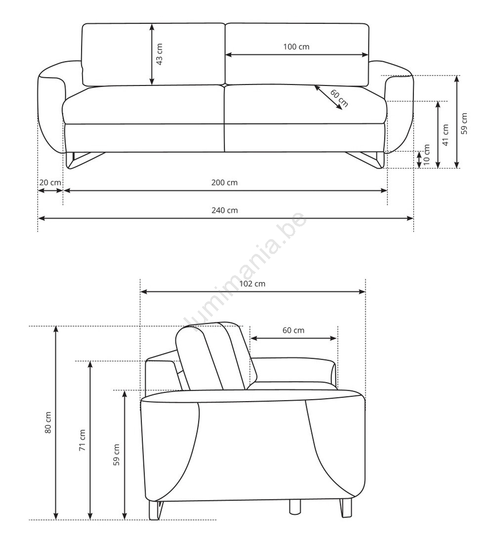 • De zitdiepte van 60 cm biedt voldoende ruimte voor ontspannen en ergonomisch zitten.