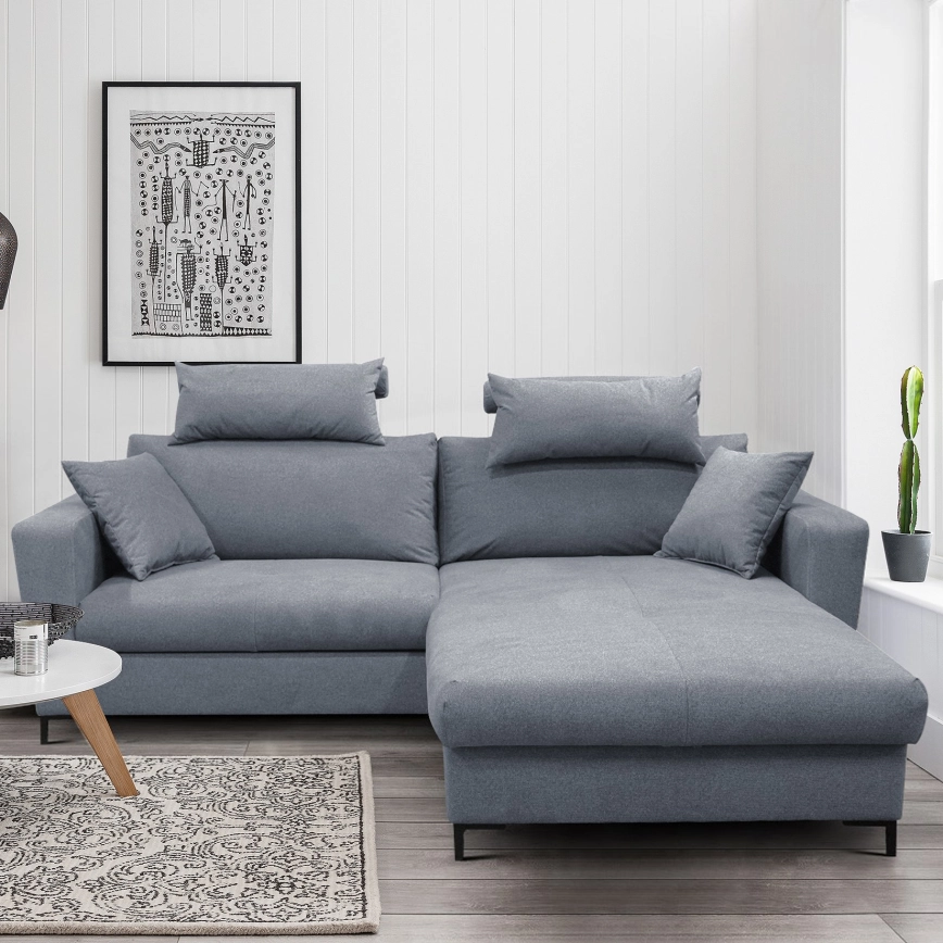 • Uitschuifbare L-vormige hoekbank HORTA met opbergruimte, rechts, grijs