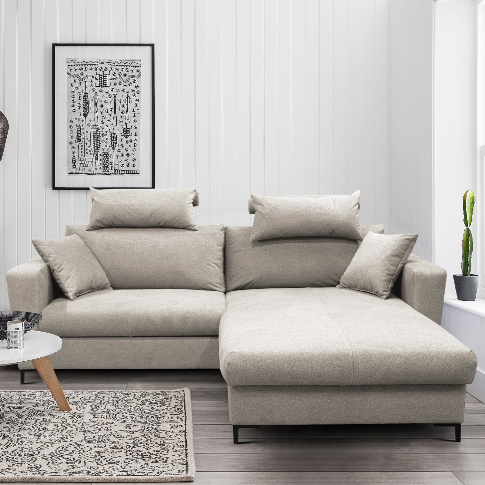• Uitschuifbare L-vormige hoekbank HORTA met opbergruimte, rechts, grijs