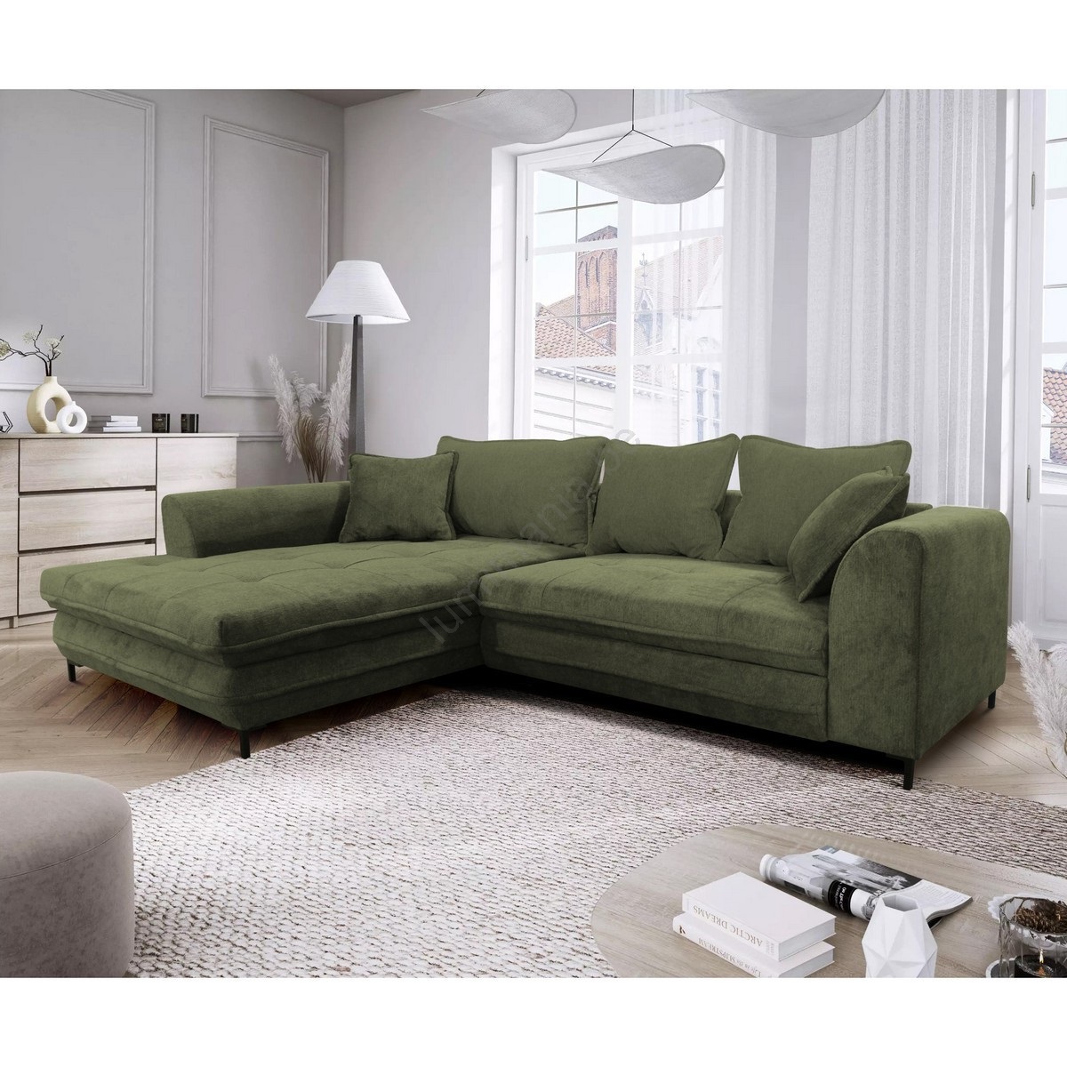 • LAGOA L-vormige hoekbank met slaapfunctie en opbergruimte, rechts, groen