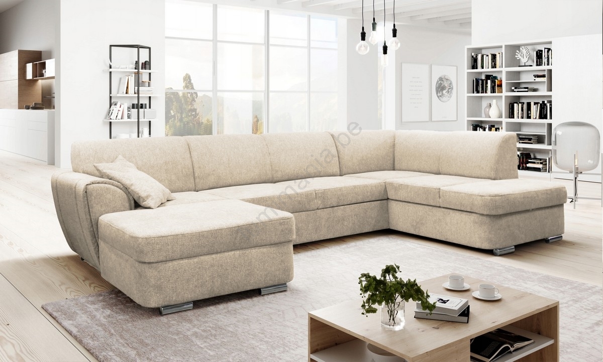 • U-vormige hoekbank met slaapfunctie en opbergruimte SERPA links beige