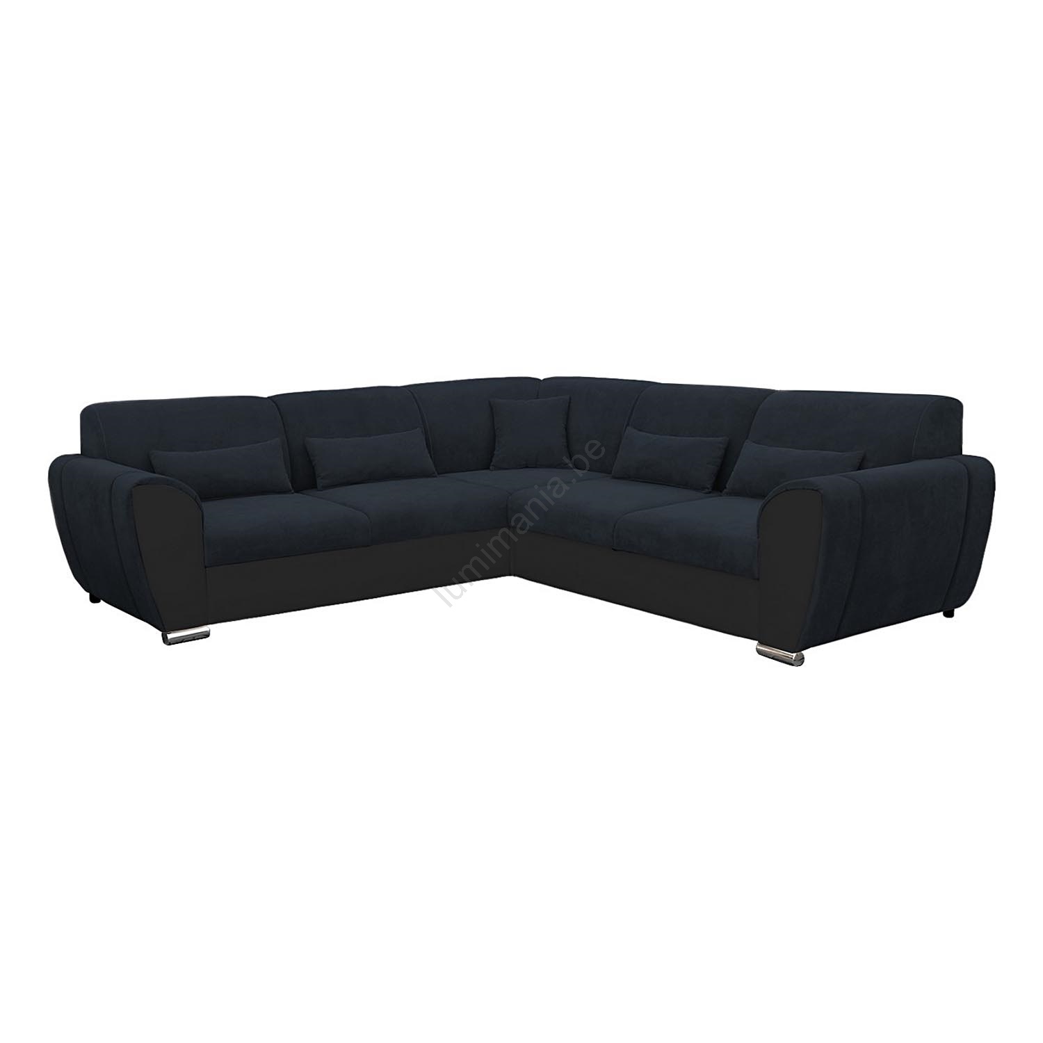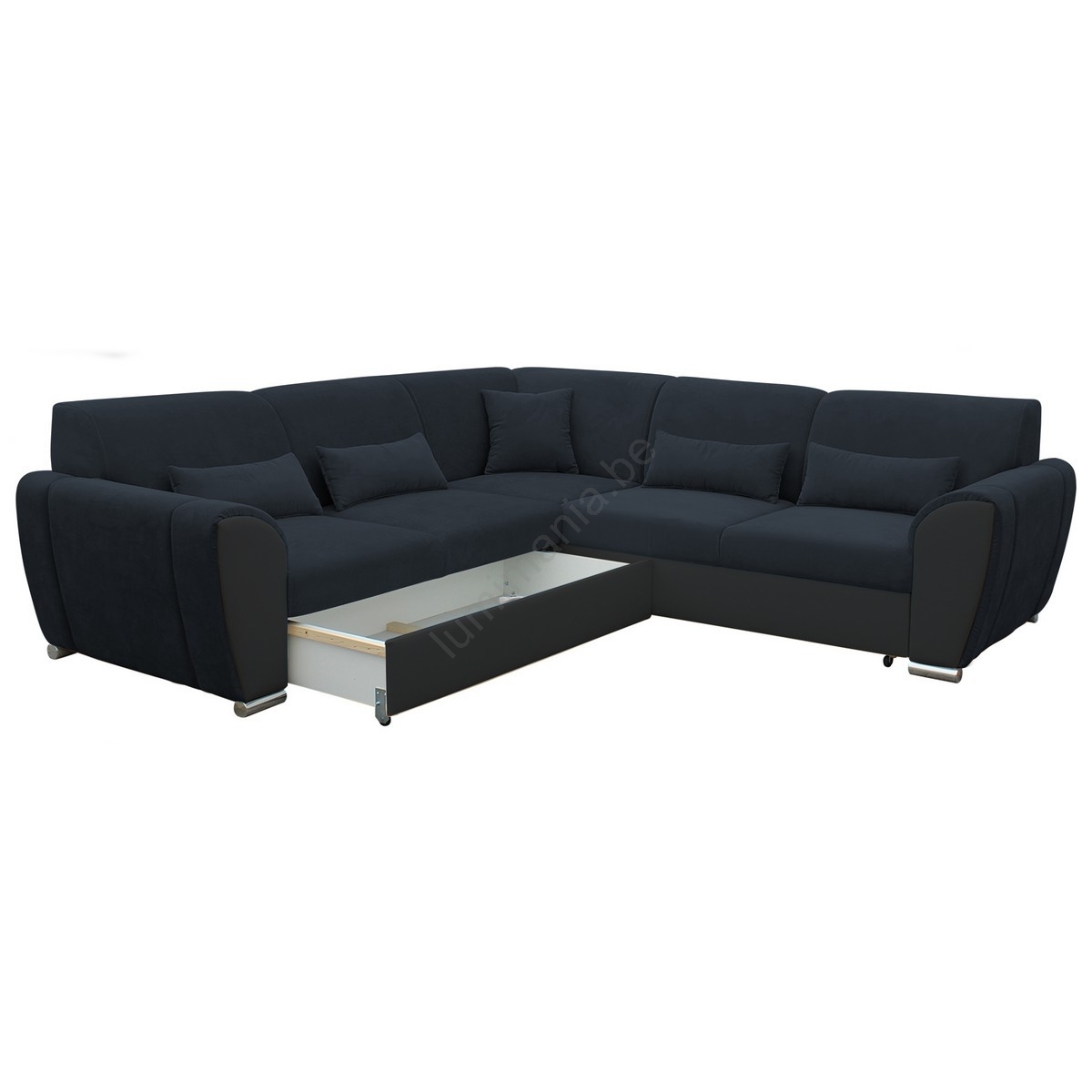 • Uitschuifbare hoekbank met opbergruimte in L-vorm VISEU links antraciet/zwart