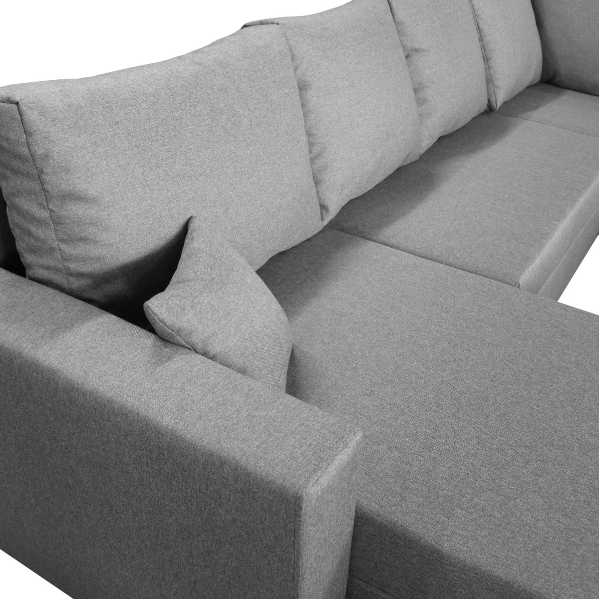 • Universeel omkeerbare U-vormige uitklapbare hoekbank SEYA met opbergruimte, grijs