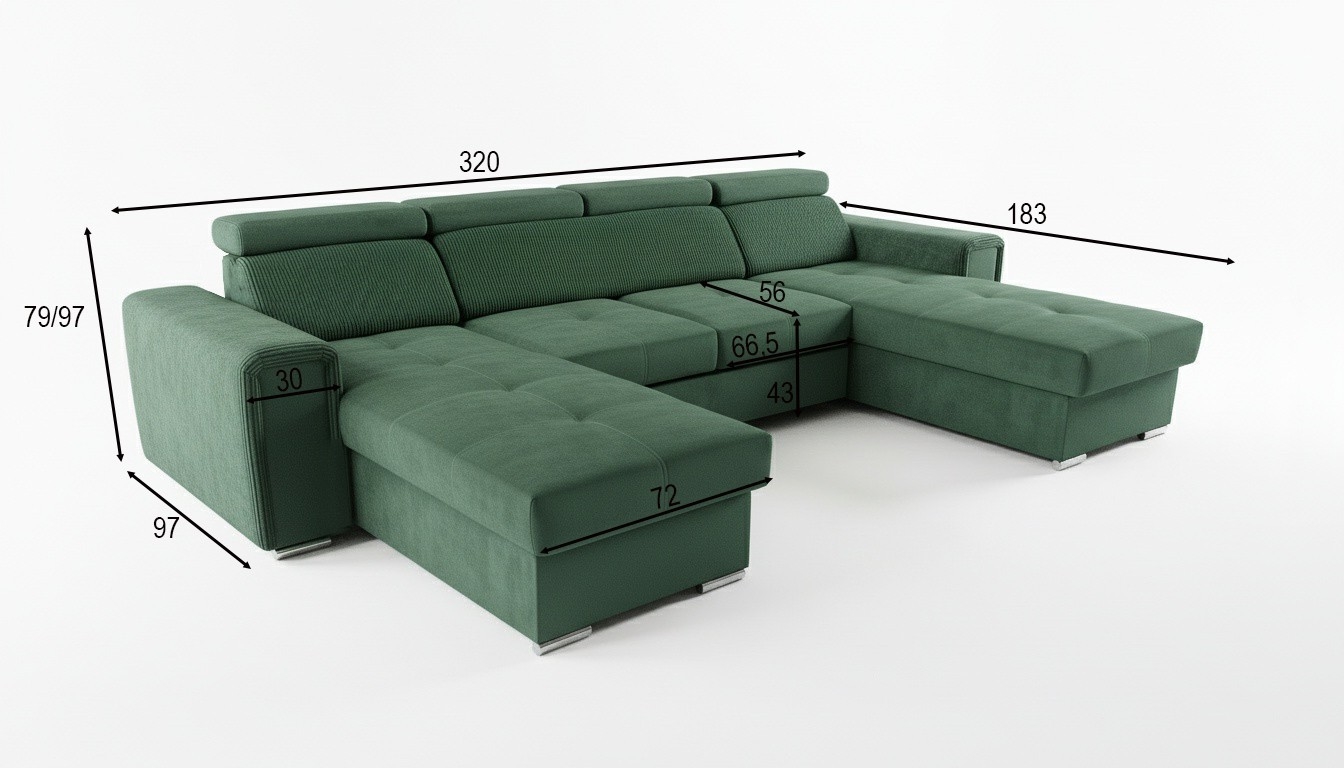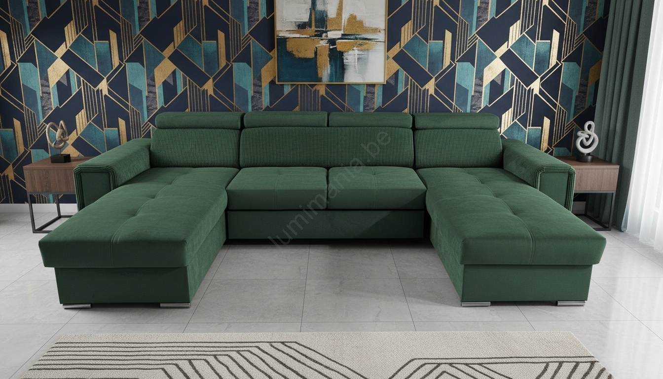 • Ruime hoekbank in U-vorm is ideaal voor dagelijks slapen en biedt zowel comfort als een stijlvol design.