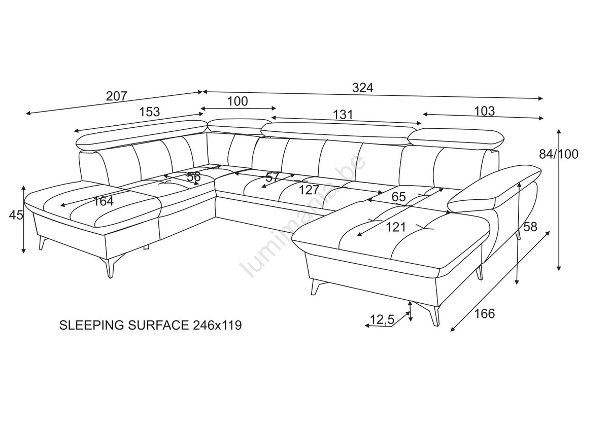 • Deze U-vormige bank combineert comfort, functionaliteit en een modern uiterlijk in één meubelstuk.