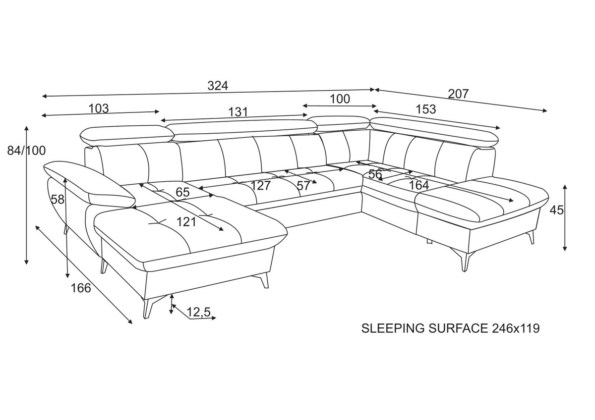 • Deze U-vormige bank combineert comfort, functionaliteit en een modern uiterlijk in één meubelstuk.