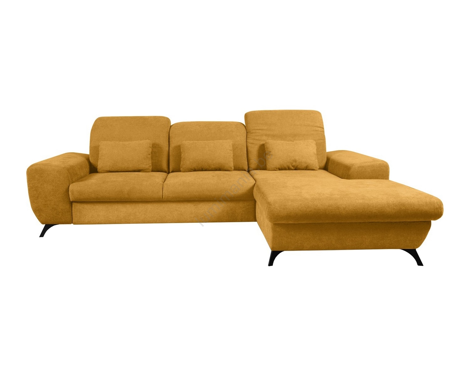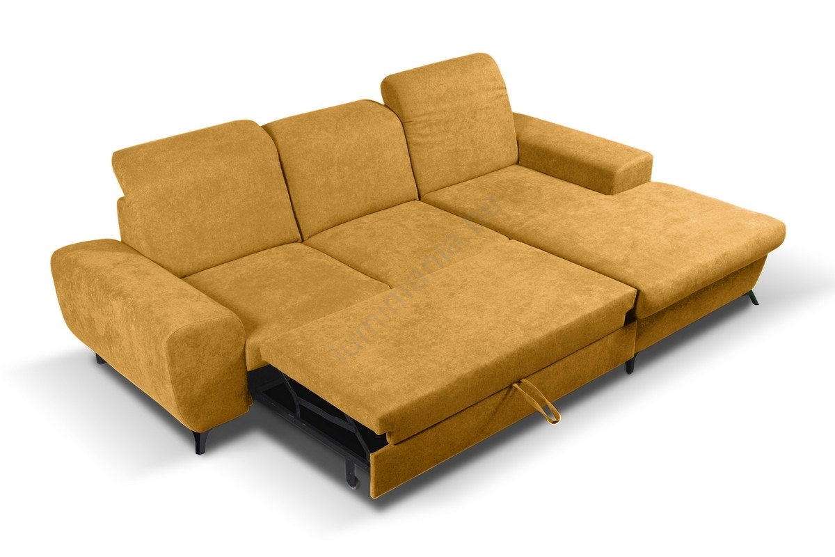Uitschuifbare gestoffeerde L-hoekbank ALTA met opbergruimte, rechts, geel