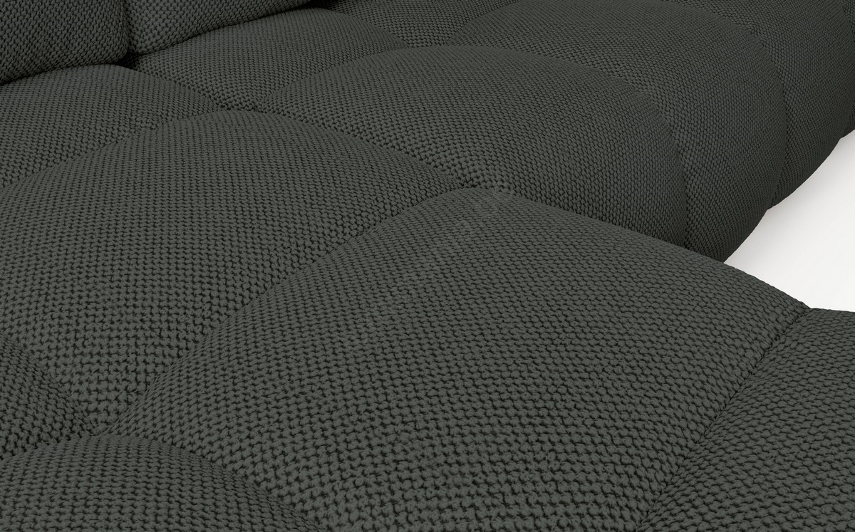 • L-vormige gestoffeerde hoekbank ALMADA met slaapfunctie en opbergruimte, rechts, antraciet
