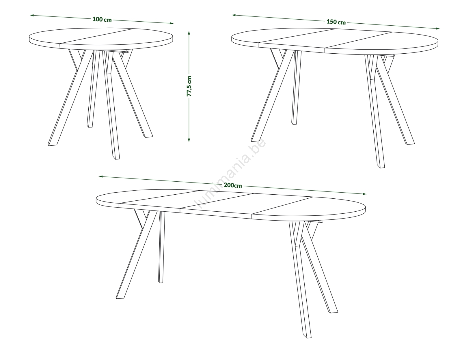 • Afmeting van de ingeklapte tafel: pr. 100 cm.