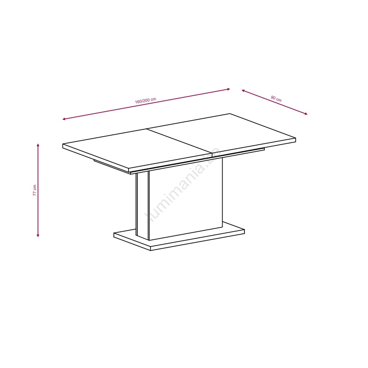 • Afmetingen uitgeklapte tafel: 200x90 cm.