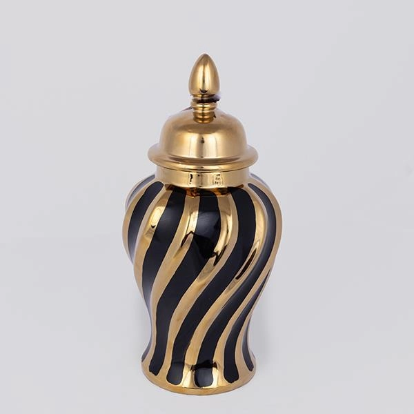 • Het contrast tussen zwart en goud geeft de vaas een verfijnde en weelderige uitstraling.