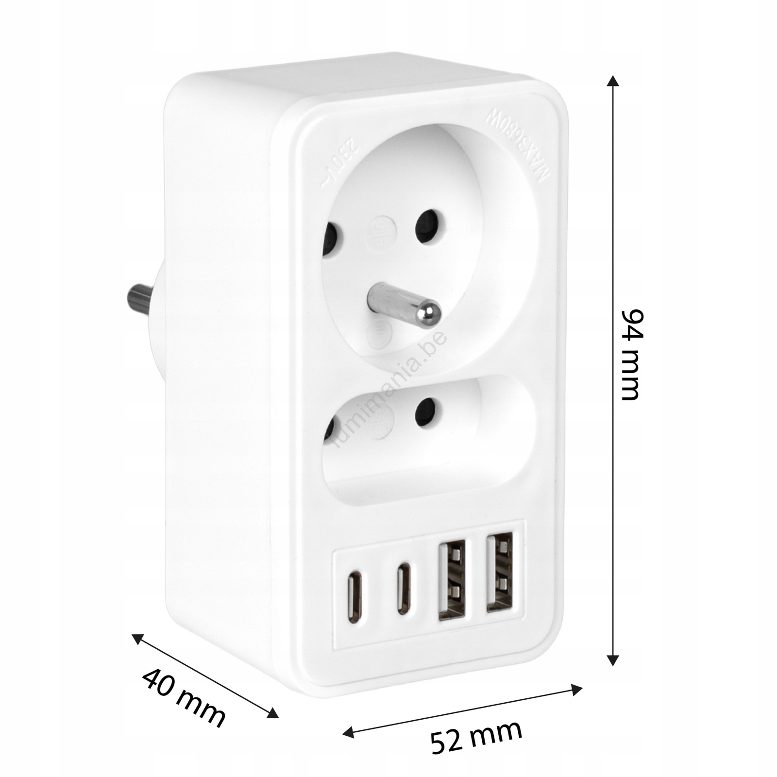 Verdeelstekker 2x stopcontact + 2x USB-C + 2x USB-A