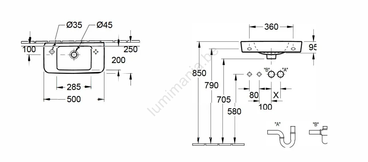 • Wastafelkraan en afvoer zijn niet inbegrepen.