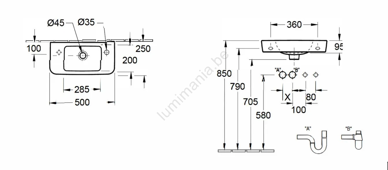 Villeroy & Boch 4342R501 - Hangend wastafel O.NOVO 50x25 cm keramiek/wit