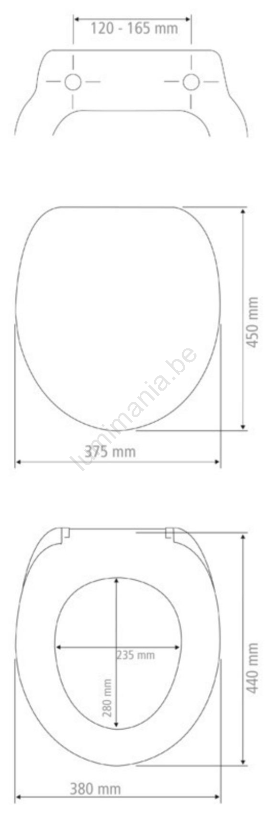 • Universele afmetingen, geschikt voor standaardtoiletten.