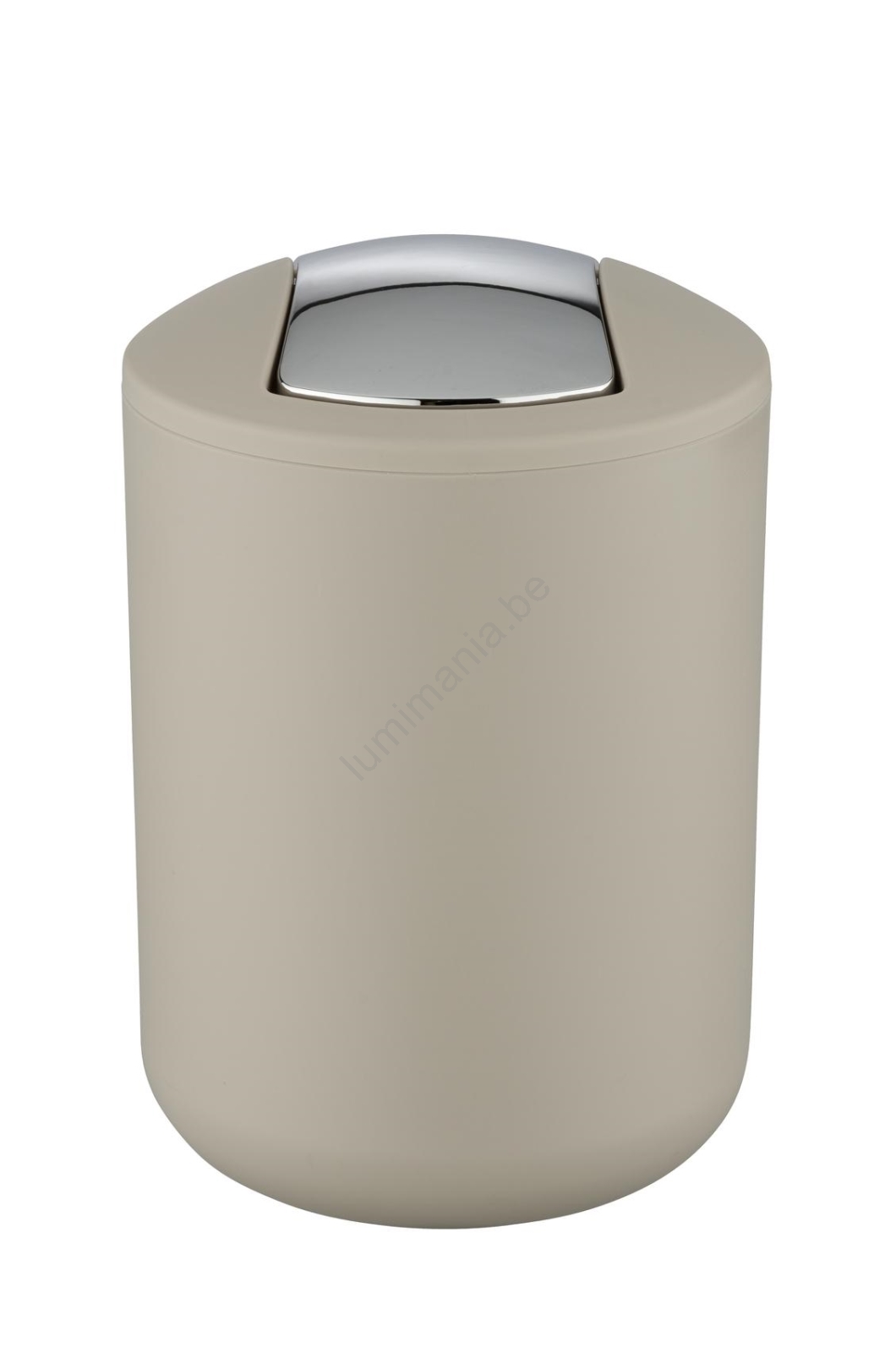 • Moderne taupe-uitvoering met een contrasterend verchroomd deksel.
