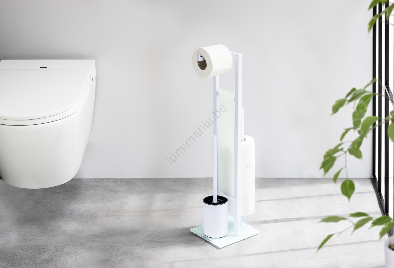 • Praktische 3-in-1 combinatie – houder voor toiletborstel, toiletrolhouder en voorraadvak voor reserverollen.