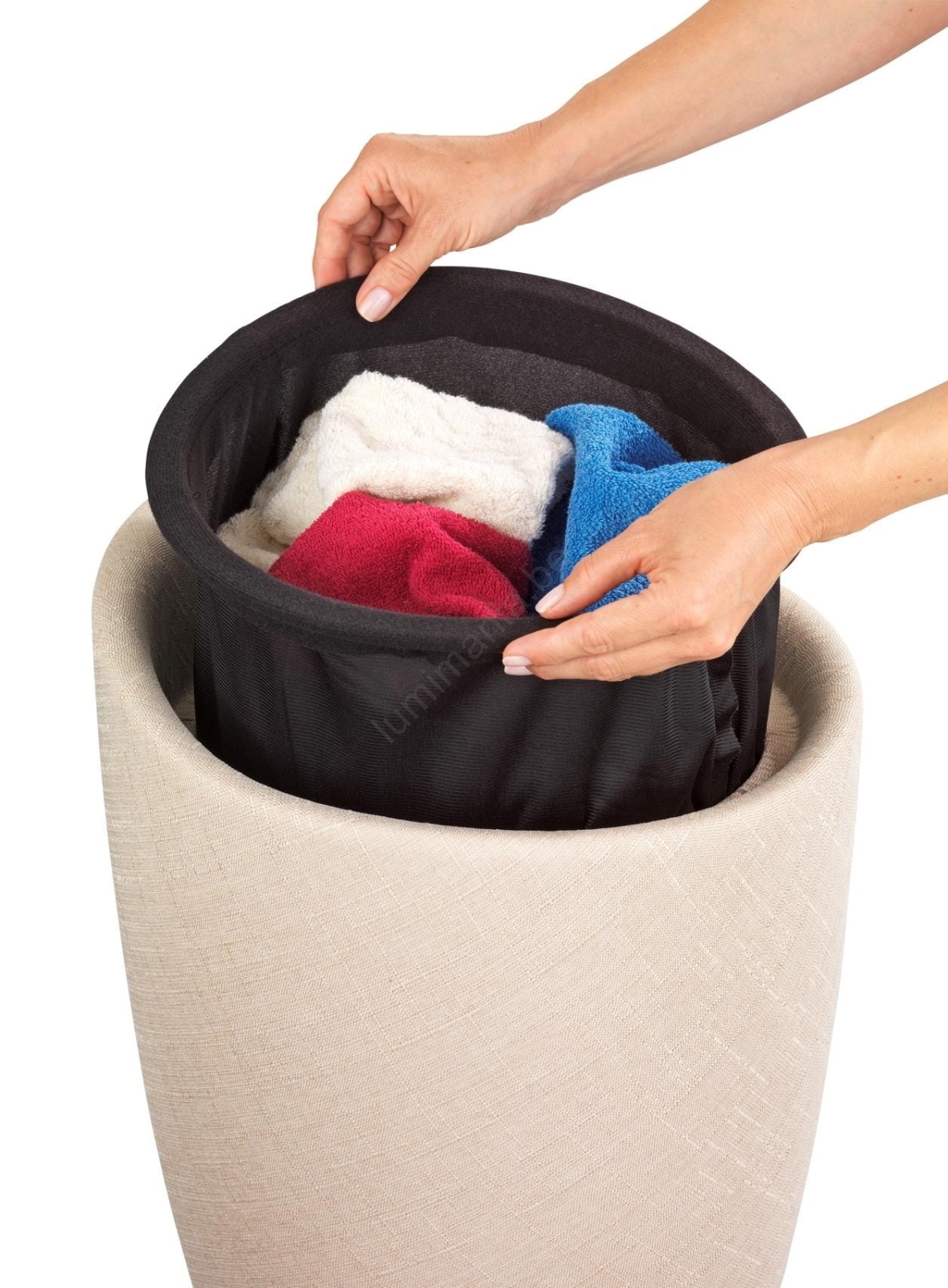 • Stijlvolle badkamerpoef met een moderne textiele bekleding in beige linnenlook.