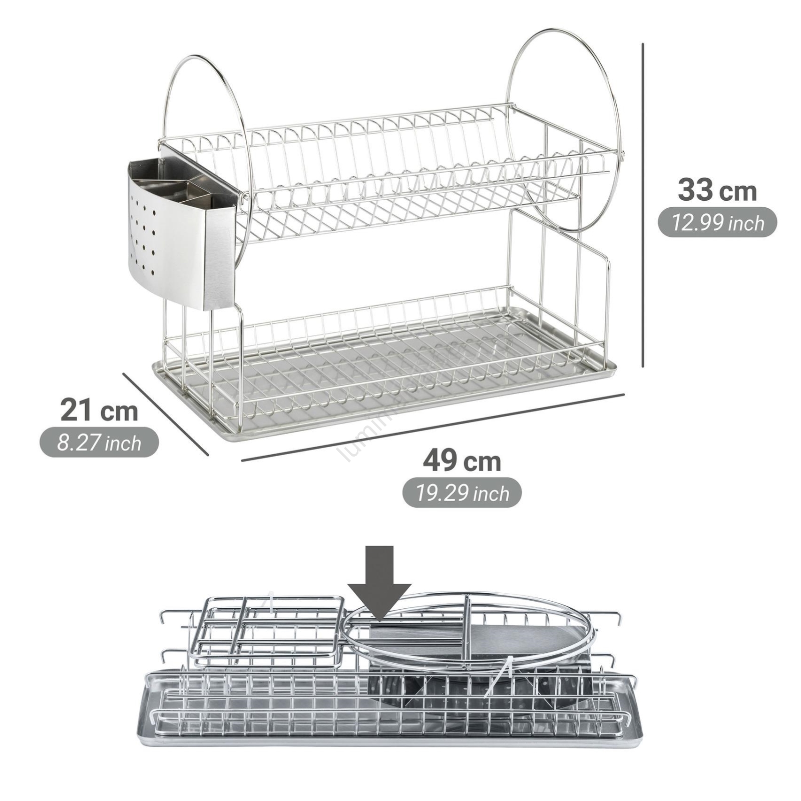 • Tweelaags afdruiprek voor servies van hoogwaardig roestvrij staal.