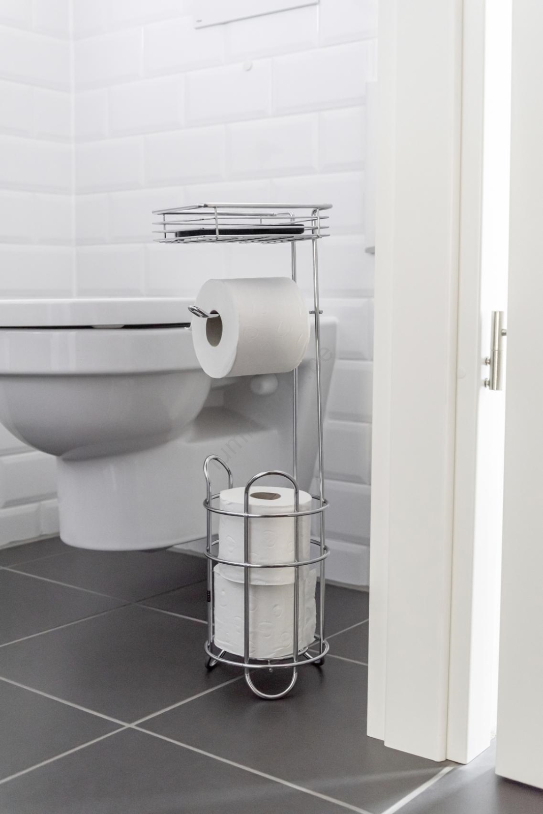 • Praktische 3-in-1 toiletrolhouder met opbergvak.