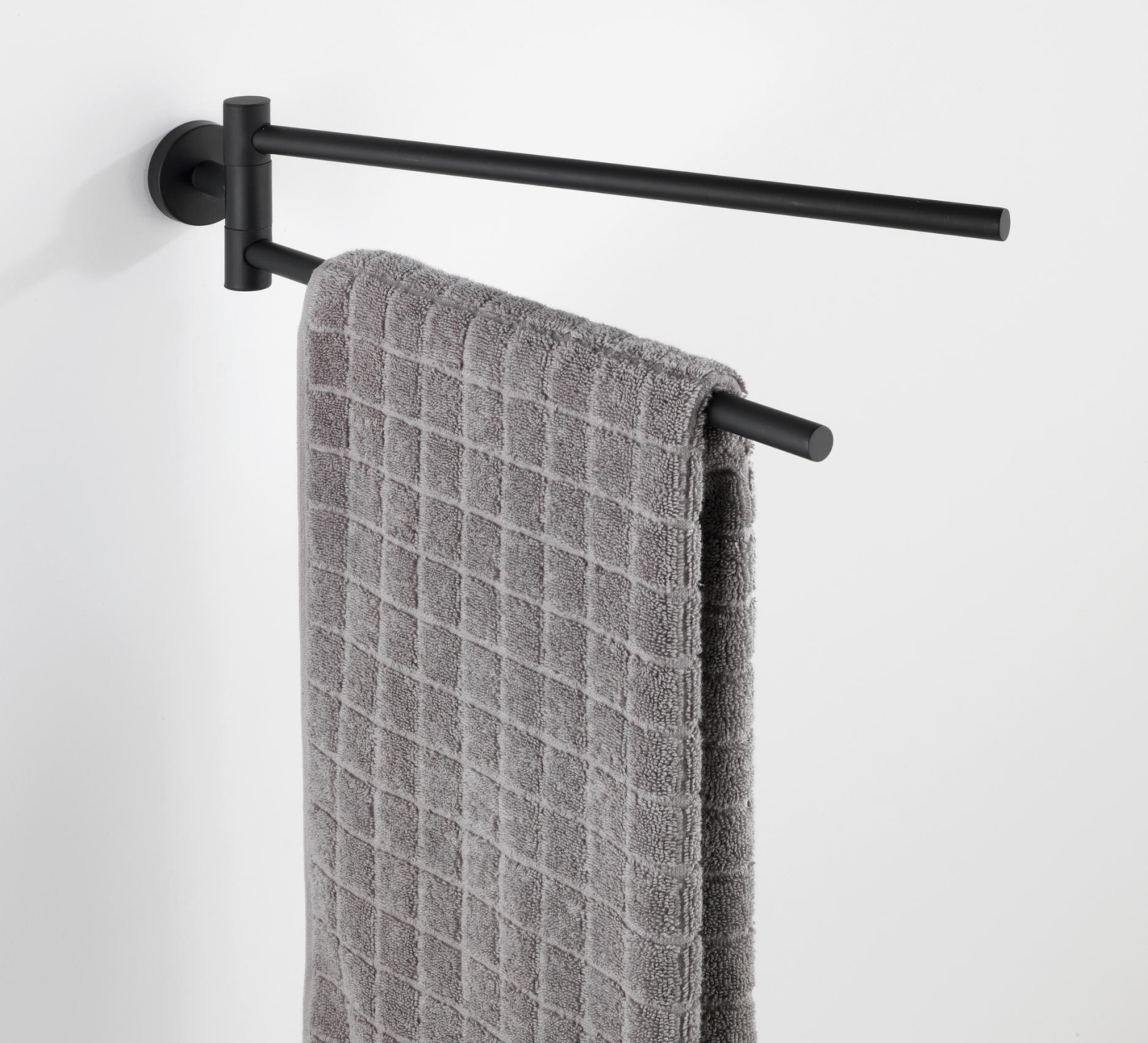• Elegante handdoekhouder met twee draaibare armen voor ruimtebesparing.