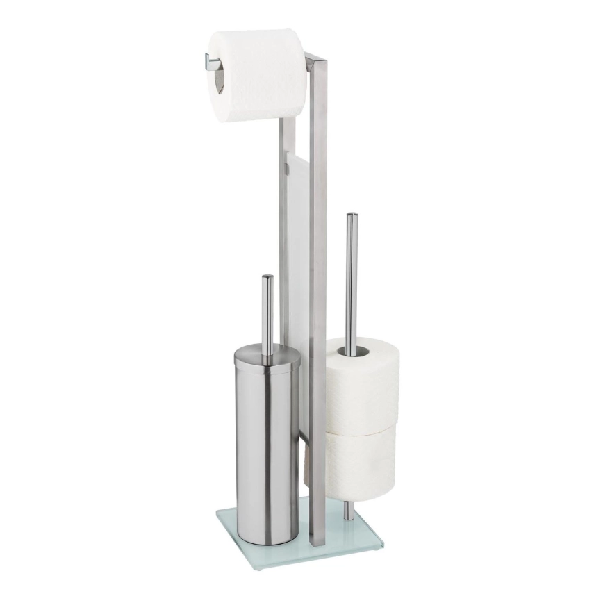 • Praktische 3-in-1 set: toiletborstel, toiletrolhouder en opbergvak voor reserverollen.
