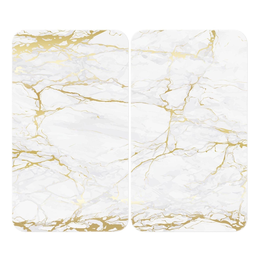 • Elegante set van 2 afdekplaten voor het fornuis met marmerprint in wit-gouden uitvoering.