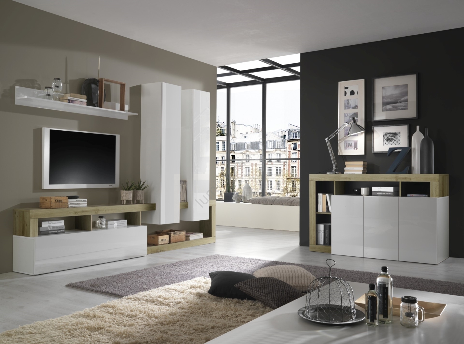 • Breng charme en elegantie in uw huis met deze woonwand, die de nadruk legt op strakke lijnen en een tijdloos design.