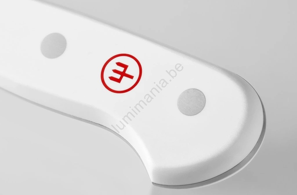 • Het handvat is gemaakt van POM (kunststof), wit van kleur en kleurvast, en bevestigd met drie roestvrijstalen klinknagels.