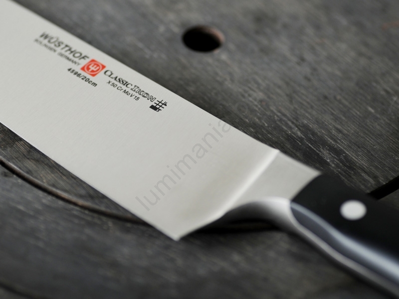 • Het gesmede mes is vervaardigd uit één stuk chroom-molybdeen-vanadium roestvrij staal.