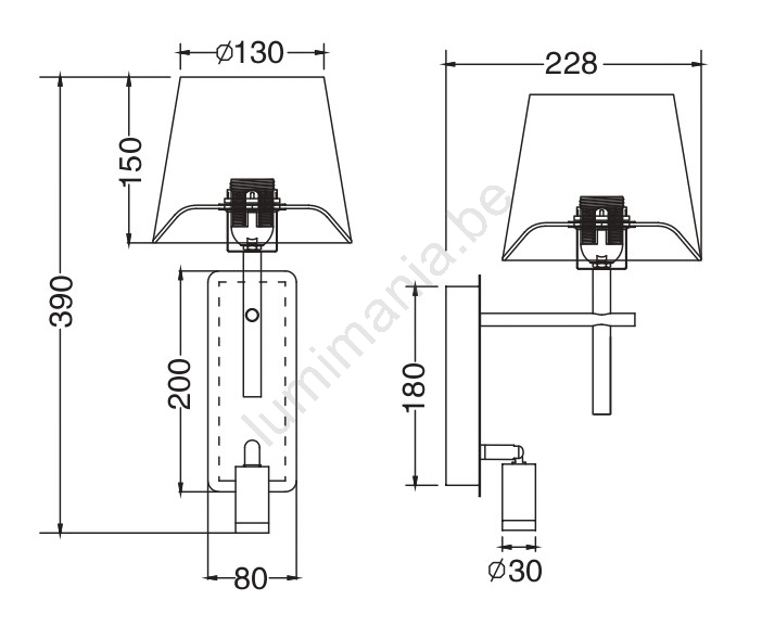 • Beide lichtbronnen kunnen afzonderlijk worden in- en uitgeschakeld met een tuimelschakelaar aan de onderzijde van het armatuur.